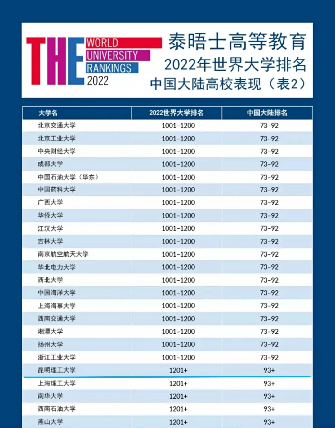 On September2nd,Times Higher Education (THE) announced the THE World University Rankingsfor2022.KUSTis the only university of Yunnan Province on the list.